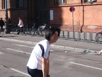 beim M�nchenmarathon, angefeuert von Freunden und Vereinskameraden.