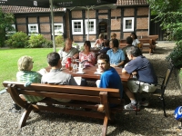 Horst hat eine sch�ne Radtour organisiert. Mit dem Rad ging es bei bestem Wetter von Pivitsheide nach Kaunitz. Im Cafe K�tterhaus konnten sich alle Ehberger f�r den R�ckweg st�rken. Au�erdem gab es eine Erfrischung auf dem Marktplatz in der Eisdiele Schlo�-Holte. |